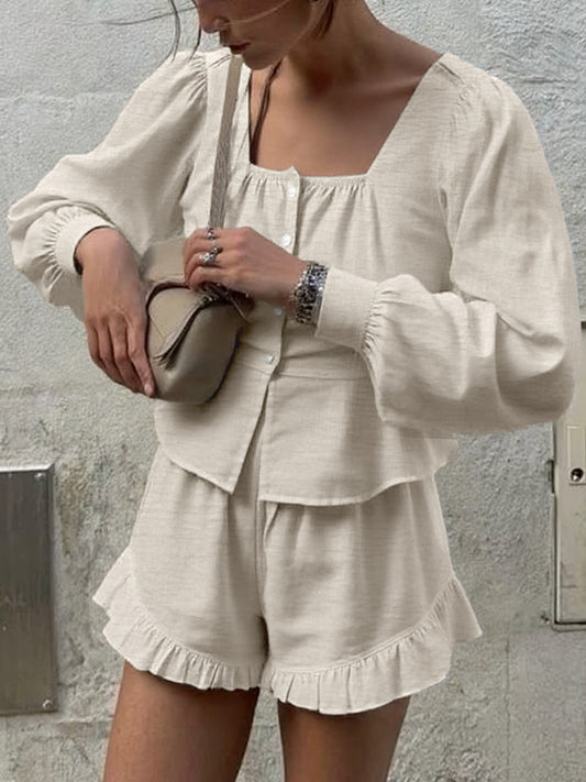Casual Long Sleeve Top & Wide Leg Pants Set