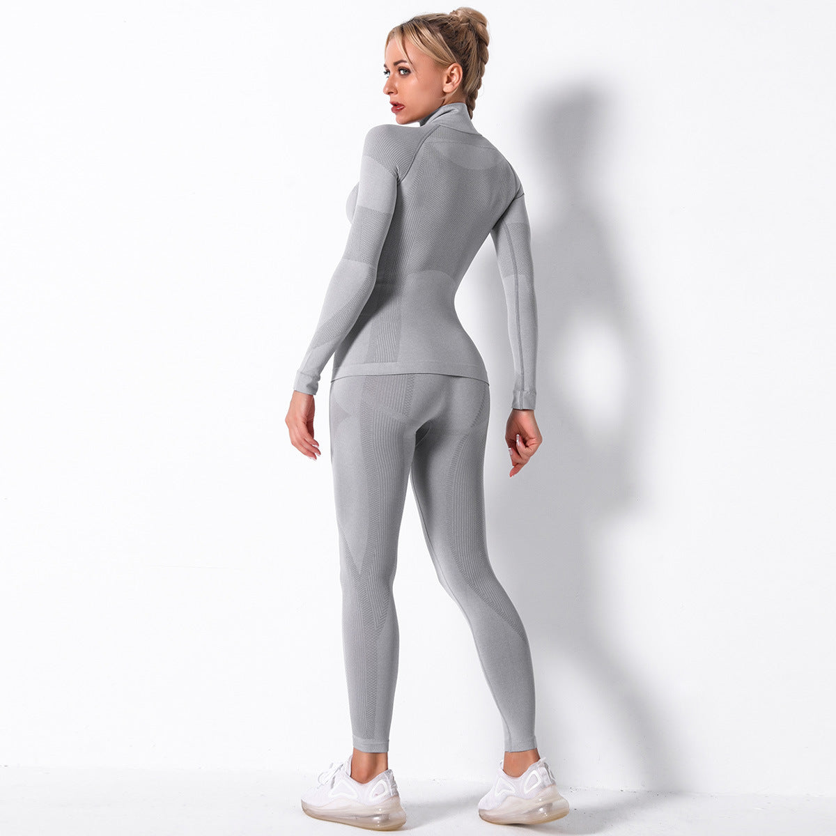 Knitted Striped Moisture Wicking Long Sleeve Yoga Suit